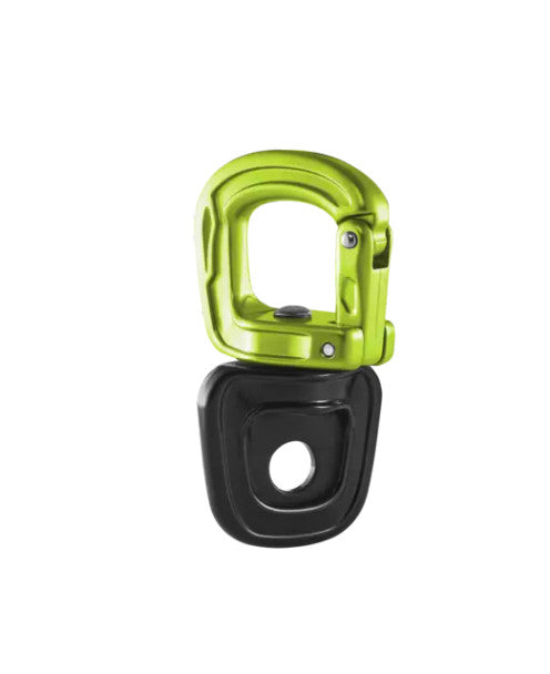 The CUPID SWIVEL MIX offers the best of two worlds: a closed eyelet on one end and an open eyelet on the other, connected together as a ball-bearing-mounted swivel. The anti-twist protector integrated in the closed eyelet secures a clipped carabiner in place to provide an optimum connection without cross loading. The mechanical screw locking system integrated into the openable side enables this to be opened and closed as often as desired without having to replace the screw.
